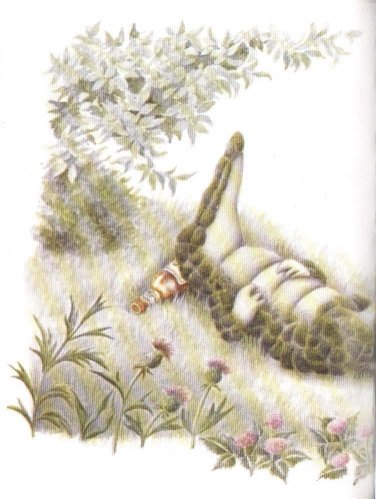 接著伊凡就仰臥在草地上, 舒服地睡著了。 |