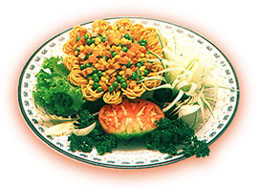 | 作法: | 油麵排在小鐵碗中油炸成黃金色 備用。然後將上述材料鍋炒勾芡, 倒入雀巢內即可。 |