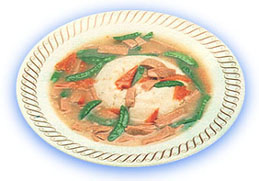 | 作法: | 將材料放入鍋中炒煮,加調味料 拌勻後勾芡即成。 |