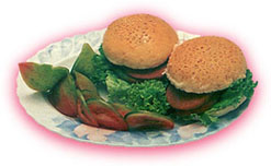 | 作法: | 麵包剖成上下兩片。NBP日本素肉 切片約0.6公分厚,油煎後與菜葉, 蕃茄片挾於麵包中間即可。 |