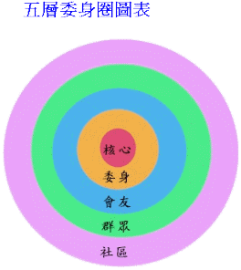 耶稣说:“照着你们的信给你们成全。”(太9:29)我把它称作“信心要素”。有许多你无法控制的因素影响你的事工:你的背景、国籍、年龄、恩赐。这些都是由全能的神所决定。但是有一个重要的因素是你能够控制的,就是:你选择要相信神多少! 在我研究教会增长的这些年来,我发现,无论属什么教派,在什么地方,所有增长的教会都有一个共同的因素:他们都拥有不怕信靠神的领导者。增长的教会都是由那些期待会众会增长的领袖们所领导的。他们是有信心的人,即使在令人灰心丧志时,仍然相信神的应许。这就是马鞍峰教会所发生的每一件事情背后的秘密。我们相信神要行大神迹,我们也期待他使用我们——透过信心、靠着恩典。那是我们的选择,也是你的选择。 有时候,从人的观点来看,一个教会的情况似乎无望。但是我坚决地相信,如同以西结的经验(结37章)所证明的,不管骨头有多枯干,神能够将新生命吹进它们里面。如果我们容许圣灵将他目标的新意义灌注到我们里面,任何教会都能回复生命。这就是目标导向教会的安身立命之道。 我的希望是,这本书能坚固你的信心,扩展你的异象,加深你对基督以及他教会的爱。我希望你能将这本书与那些关心你们会众的人分享。请接受这个挑战,成为目标导向的教会!历史上最伟大的教会还待建立,你能接受这个任务吗?我祈求神使用你,在你的世代,完成他的目标。人生在世,所能有的贡献,莫大于此! 五个委身圈的中英文名词对照