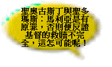 i)天主之母 天主教承认圣经中没有“天主之母”这名称,但却以为有根据:(引以下天主教的圣经) “那要诞生的圣者,要称为天主的儿子。”路加福音一:35 “但时期一满,天主就差遣了自己的儿子来,生于女人,生于律法之下。”迦拉达书四:4 “按血统说,也是从他们来的,……”罗马人书九:4 因圣经记载主耶稣是从马利亚而生,并且所生的是天主子,故以马利亚为“天主之母”。 辩正:这些经文是指出主人性的一面,没有将马利亚升格为神,并且他们根据的是大公会议中的名词,在圣经中根本没有这种意思,而引用的经文又是被利用来支持他们的理论。根据路一:46─47 的话,马利亚自承为婢女及需要救主,又何以跃升为“神的母亲”?路二:48─49及约二:3─4等,主耶稣以马利亚没有权来干涉他的行事。若以主耶稣是无罪,便认为其生母也是无罪,这样的逻辑便会引伸至夏娃也是无罪,那么人又何需要救主呢?主耶稣的无罪是因圣灵感孕而生! ii)圣望之母 天主教说:“马利亚的信德击破『十字架与天主子』之间的矛盾,在完全绝望的境况中,她没有像其他动摇的门徒,更没有像跌倒三次的伯多禄,她的信德成为了我们的『圣望之母』” 辩正:其他的妇女的信德为何不被提及呢?并使徒约翰所表现的岂不更坚定吗?为何不以他的信德作榜样呢? “你们蒙召原是为此,因基督也为你们受过苦,给你们留下榜样,叫你们跟随他的脚踪行。”彼前二:21,天主教所尊称的彼得,却教导我们单单以主耶稣为榜样,却没有吩咐我们要以马利亚为榜样。 iii)痛苦之母 以马利亚在十架下,那种和谐和爱的疼痛,参与了耶稣在十架上无罪的痛苦,显示她对天主,对人的爱,襄助了救赎工程的完成。 辩正:马利亚的痛哭是表现她内心的感受,根本与救赎无关。根据希伯来书九章十四节的话:“何况基督藉著永远的灵,将自己无瑕无疵献给 神……”,作者对第二代的信徒提及主救赎的事,并没有提及有马利亚襄助的成份在内,只单单论及三位一体 神的同工。 iv)教义的推理 一八五四年:定“马利亚无原罪”的信条,由教皇庇乌九世宣布马利亚生下就没有原罪。 辩正:但天主教所高举的两大神学家圣奥古斯丁及圣多玛斯,却同样认定马利亚是有原罪的,因马利亚若没有原罪及本罪,则反证基督的救赎不是完全及普及的,但这是不可能的事 “我是在罪孽里生的,在我母亲怀我胎的时候就有了罪。”诗五十一:5 “这就如罪是从一人入了世界,死又是从罪来的,于是死就临到众人,因人众人都犯了罪。”罗五:12 一八九一年:教皇利欧十三世宣称,人必须要经过马利亚方可以亲近基督。 辩正:耶稣基督在世的时候,人常常亲近他,反而马利亚被拒在外,需要别人来向主耶稣通传,参太十二:46─49。 一八九六年:教皇利欧十三世再次宣布马利亚为“人和中保间的中保”。 辩正:若有“人和中保间的中保”,中保本身就已不是中保了,这是拒绝主耶稣中保的地位。 一九零四年:教皇庇乌十世宣称,神藉马利亚才能将恩典赐下来。 辩正:“恩典和真理,都是由耶稣基督来的。”约一:17,及“所以我们只管坦然无惧的来到施恩的宝座前,为要得怜恤,蒙恩惠作随时的帮助。”来四:16,恩典是从主来的,并且 神应许我可以“随时”得着。 一九四五年:教皇庇乌十二世曾发出一个调查表,徵求各主教的意见,看他们认为是否教皇应当宣称马利亚死后身体即被提升天一事为教谕,大多数主教都热烈的赞成。 辩正:多人的决定岂可以强求 神去作成呢?多人所议定的又可以成为真理吗? “众人以为美的事,要留心去作。”罗十二:17 一九五零年:定“马利亚身体升天”的信条,意思是马利亚在世上死时,她的肉体没有腐烂,而是直接升上天上去了。因此,他们认为马利亚是信徒和主耶稣之间的中保,信徒要向马利亚祷告,主的一切福气包括救恩都是从马利亚赐下来的。实际上,在天主教的救义中,马利亚代替主耶稣作了他所作的一切工作,只差没有称马利亚为救主。 辩正:“除了从天降下仍旧在天的人子,没有人升过天。”约三:13,除了主耶稣外,没有人是自己可以升天,都是被接升天。 4)圣礼的混乱