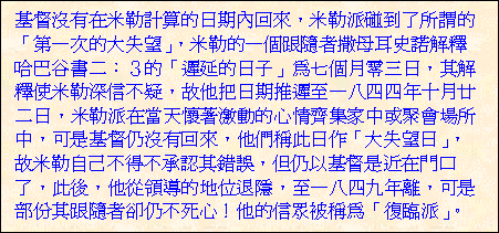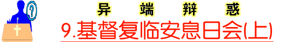 1.偏差溯源 2.大公教会(上) 3.大公教会(中) 4.大公教会(下) 5.摩门教(上) 6.摩门教(下) 7.耶和华见证人会(上) 8.耶和华见证会(下) [ 9.基督复临安息日会(上)