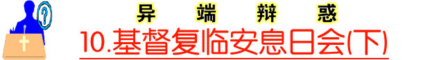 1.偏差溯源 2.大公教会(上) 3.大公教会(中) 4.大公教会(下) 5.摩门教(上) 6.摩门教(下) 7.耶和华见证人会(上) 8.耶和华见证会(下) 9.基督复临安息日会(上) [ 10.基督复临安息日会(下)