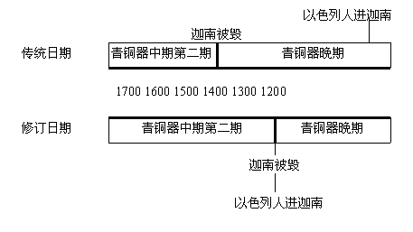 2. 将青铜器中期的下限向后移,由主前一五五O年移到主前一四OO年。