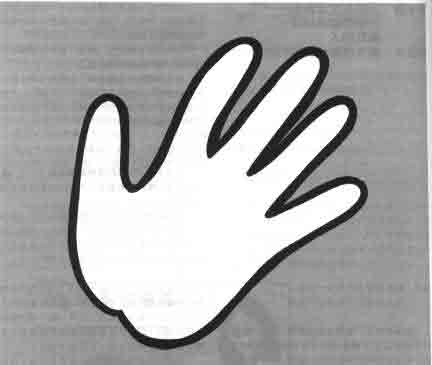 请看看你的手;手和手指除了用来代表五个可以凭祷告嬴取的人和五个可以藉见证赢取的人外,还代表了基本的真理。下面一幅「手的图解」是空白的,请你把各有关的基本真理填写在手掌及每一只手指上。你一定会做得很好!