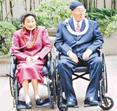 6年前,张学良夫妇刚刚移居夏威夷时,社交活动还较为频繁。当时,华夏电视公司主办京戏公演,他们经常前往观赏,完场时便走上舞台向票友们打招呼并合影留念。后来,两人的身体日渐衰老,社交活动渐渐稀少。自去年他们住进一间设备完善的老人公寓后,生活就更平淡了,对此,一家华人报纸曾经有过如下报道----“每天早上由两位专业护士,推着两只轮椅到院子里散步,9时到10时,赵一荻读圣经给张学良听,偶尔也有熟人来打个招呼……”