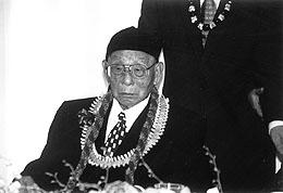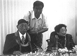 一进大厅,就看见张学良将军和夫人赵四小姐端坐在一个临时搭成的主席台上,前面桌子上堆满了鲜花。张将军头戴深蓝色的毛线瓜皮圆帽,身穿深蓝色新西服,系着红色领带,颈上挂着大红和粉红的两串花环:赵四小姐身穿枣红色长裙,鼻孔插着氧气管,颈上也挂了一串黄色花环。两人都坐轮椅,张学良一动不动目视前方,赵四小姐则不时转过头和客人答话。一时间,我的脑海中忽然千言万语,历史或者无情,又或者有情。身拥重兵的少帅忽地成为阶下之囚,而时光逝水,囚禁他的人早已死去,蒋家父子家天下的局面也早已成了昨日黄花。张学良将军活着,目睹政坛风云,真不知心中是喜是悲。