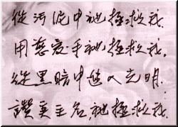 父亲的字,颇接近颜真卿的字型,珠圆玉润的书法,透露出他宽厚、成熟的个性。