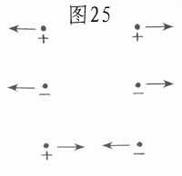 异类的两种电流体互相吸引。这可以用图来表达,如图25所示。