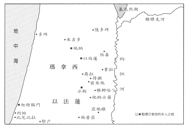 图四 约书亚记十七至十九章的以法莲和玛拿西之地