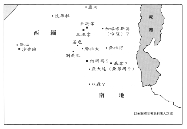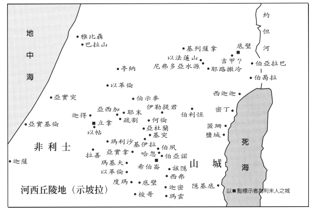 图二 约书亚记一至十二章的南部各地