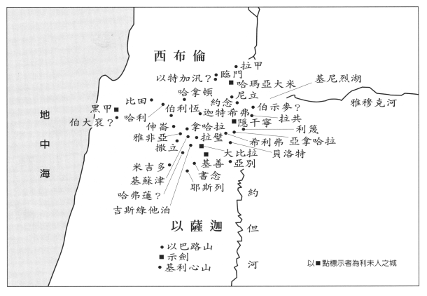图一 约书亚记一至十二章的北部各地