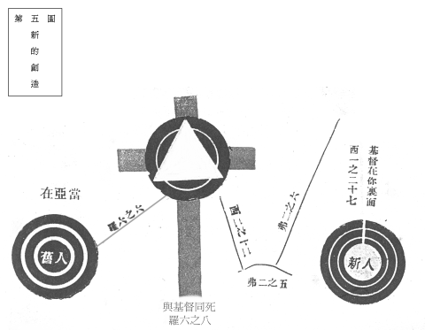 从前我在中国的时候,在一个学校里领了几次奋兴会。我在那些会里宣称,藉 耶稣基督的死与复活,一个人就可以从罪恶的刑罚与权势中救赎出来。有一次的讲道是特别说到我们现在所要讨论的题目。在听众里面有一个最留心的听道者,他在学校里已经做了十一年的经学教员。他虽然每天在礼拜堂中听福音,并且也到礼拜堂里去听过道;但是他总没有做基督徒。在那些日子上帝的灵忽然在他的心里做工作,使他信服道理,末了就引导他在众人面前承认基督。後来这教员和一个传教士在谈话中说起,他虽然早已相信福音书上所说的基督替他的罪而死的真理,可是他从没有接受他做救主;因为这不见得能够全完适应他的需求。他说他处於罪的管辖之下,并且为旧的罪恶的本性所统治,直等到他知道上帝在基督的十字架上可以处置罪恶的根性,总不相信这一种的救恩是足以把他救赎出来。但是他已寻 了这种荣耀的真理,就是说:『旧人』被钉死了以後,上帝就能拯救那些因 基督到他那里来的人们,以及那些接受他十字架完全功劳的人们。