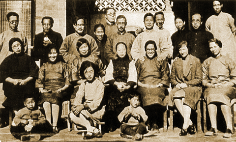 1930年在河北定县与同工及家人合影(晏氏手扶夫人两肩)
