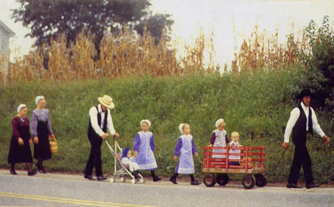 今欲述说的是十六世纪一小部份欧洲移民在宗教改革后移民北美洲,找到了也至终享受著世外桃源的生活和真正意义。他们保存了三百年来的信仰,传统和生活方式,少有变更,没有干扰,不受迫害。地点在宾州东部的内地。移民来自德,瑞边境的山区,连自己的土语(近德文)也一并保存至今,他们有自己的报纸,用自己的文字,除非已进小学(限六年级),儿童们是不谙英语的。