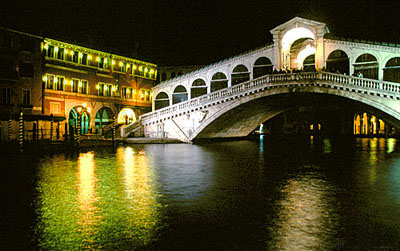 “威尼斯商人”就以此处作故事现场。这第一度横跨大运河的石拱桥有篷顶,两边饰以雕刻栏杆和拱门,桥内有两排小商店紧靠著拱门,出售珠宝,皮革,和丝绸等货物。在桥上眺望大运河可以领略到水城的风韵,它似一条巨蟒蜿蜒穿过市区像反写的