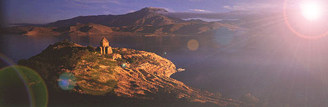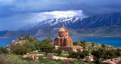 安納托利亞高原南、北兩側山地向東匯合為亞美尼亞高原,高原大部為3 000∼4 000米,地勢高峻,多高山深谷,也有熔岩廣布的高原和適於耕作的盆地。阿拉斯河谷是海拔1 000米左右的寬闊高平原。接近東部邊境的大阿勒山是一古火山錐,海拔5 165米,是全國最高峰,峰頂終年積雪。由火山熔岩堵塞河谷形成的凡湖,為鹹水湖,面積3 760平方公里,是全國最大湖泊,湖面海拔1 600多米,為世界高湖之一。湖區附近曾是古代亞美尼亞文化中心。安納托利亞高原以西,山脈向西延伸,與愛琴海海岸直交。近海一帶低山與陷落谷地相間分佈,河流沿地塹流入愛琴海,是內陸通往沿海的通道。馬爾馬拉海的東側和西側多為低地或平原,是土耳其重要農業區之一。
